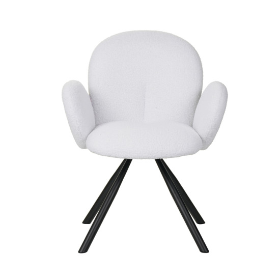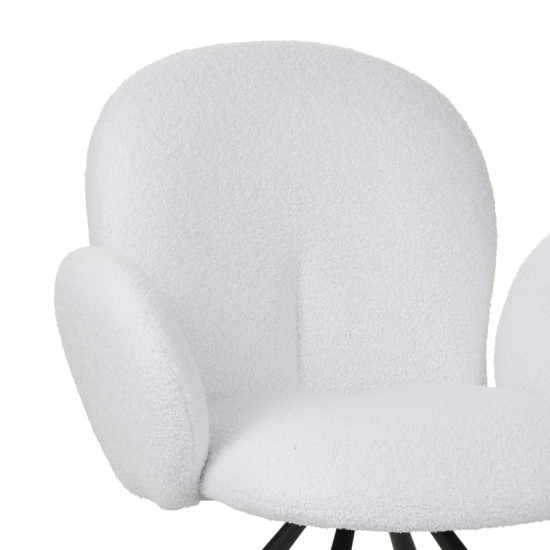 Armchair Garzele Inart white teddy fabric-leg black metal 68x66x82.5cm