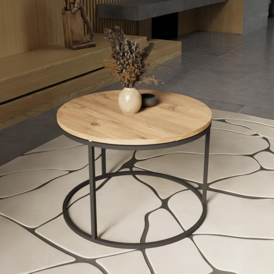 Coffee table Drion pakoworld oak melamine-black metal Φ60x40cm