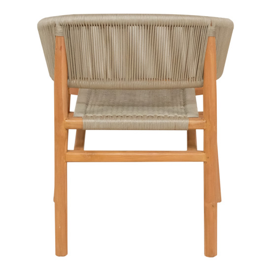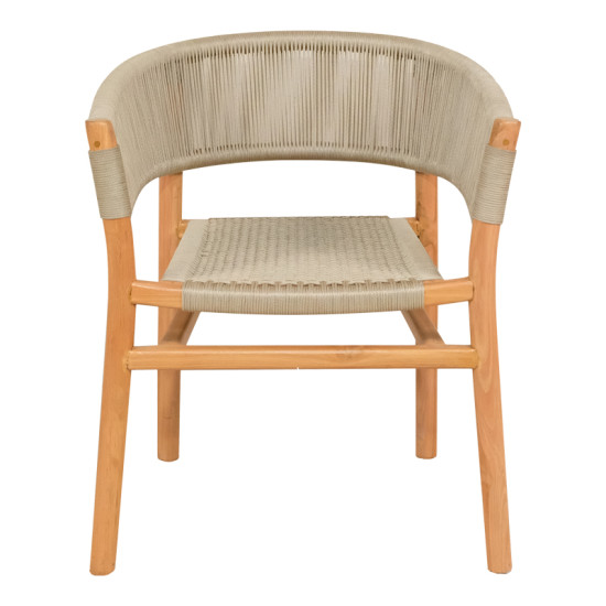 Kajone armchair pakoworld teak wood skeleton in natural shade and cream rope 62x55x75cm