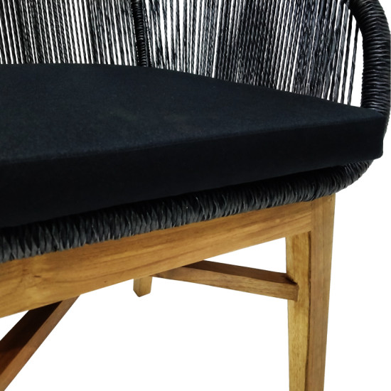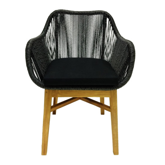 Kalie armchair pakoworld teak wood and synthetic rope in natural-black shade with cushion 60x61x80cm