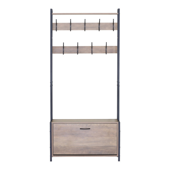 The Ventoria multifunctional unit is the ideal solution to keep your entryway, hallway, or even bedroom organized and stylish. Combining a coat rack, shoe cabinet, and a practical bench, it offers maximum functionality in a modern industrial design.