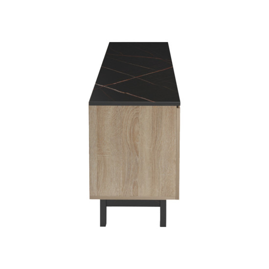 Kasandra pakoworld TV cabinet in black marble-sonoma shade 180x35x48.5cm