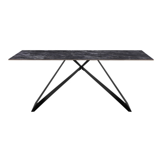 Kitchen table Meja pakoword sintered black stone with black metal legs 180x90x76cm