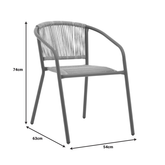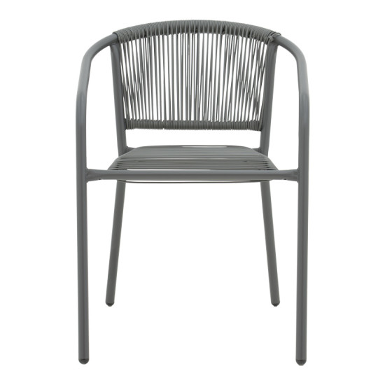 Lindaria pakoworld stackable metal-pe rattan armchair in dark grey color 54x63x74cm