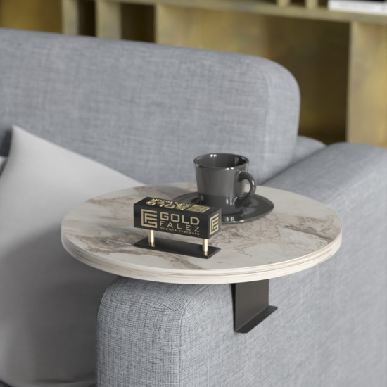 The Linea side table is a practical and stylish solution for those who seek comfort and convenience in their space. Designed to be placed on the armrest of a sofa, it provides a stable surface for placing drinks, books, remote controls, and other everyday essentials.