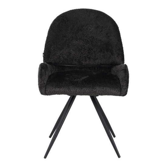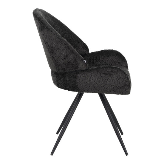 Morea pakoworld rotating chair bouclé in black color with black metallic legs 68x66x82.5cm