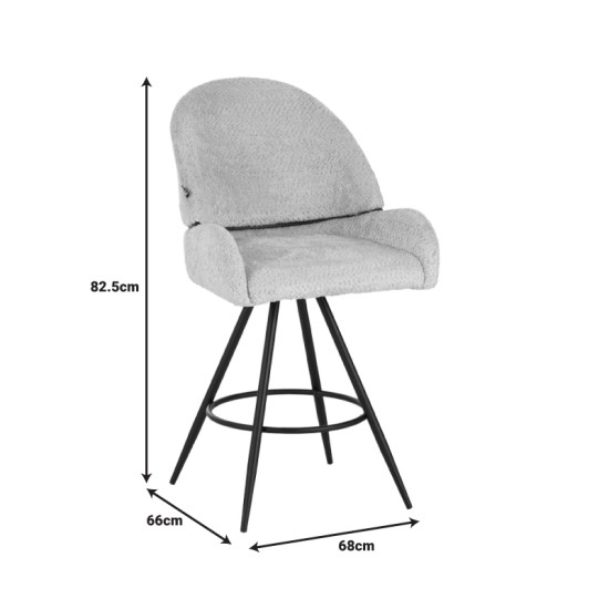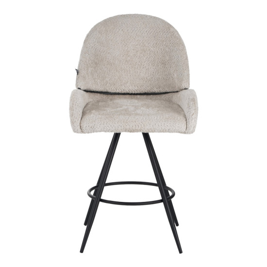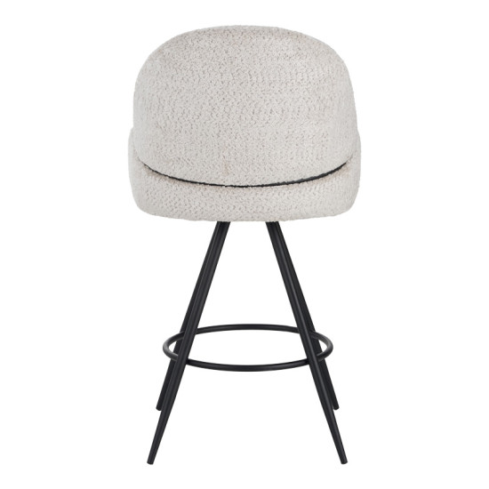 Morea pakoworld rotating bar stool bouclé in beige color with black metallic legs 68x66x82.5cm
