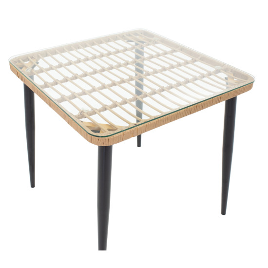 Naoki U dining table set of 5 pakoworld rattan pe in natural shade and black metal 80x80x78cm