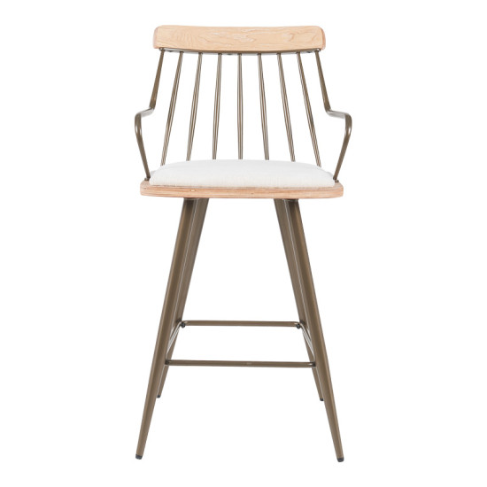 Posse bar stool pakoworld bronze metal-white wash wood-beige fabric 48x54x92.5cm