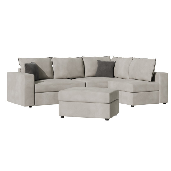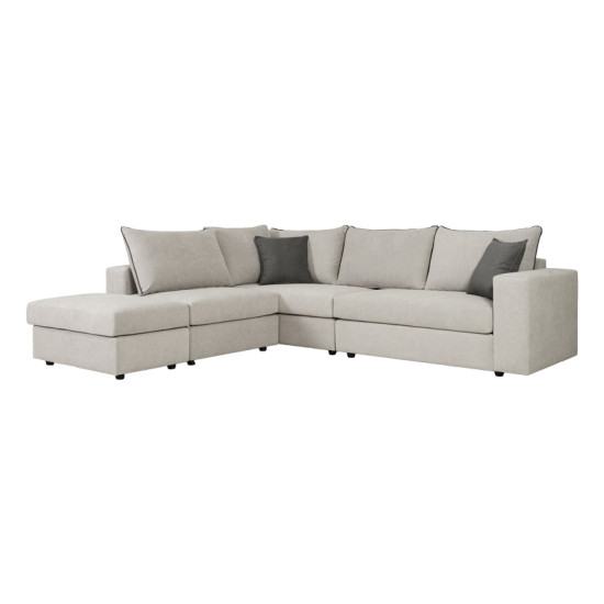Reversible polymorphic sofa London pakoworld light grey fabric-grey cushions 296x246x95cm