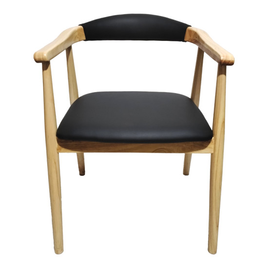 Sandi pakoworld rubberwood armchair in natural shade with black pu cushion 50x60x80cm