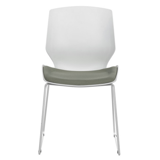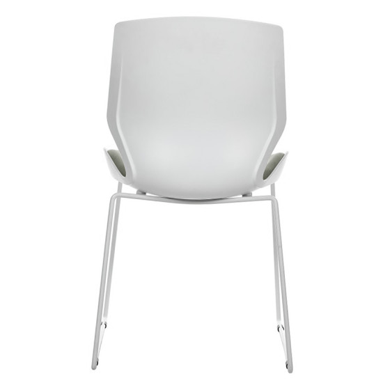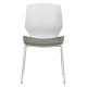 *Unique square back and seat made of polypropylene (100% recyclable material) with high resistance to wear and tear. The design of the seat supports the spine and the waist, it is offered in white.