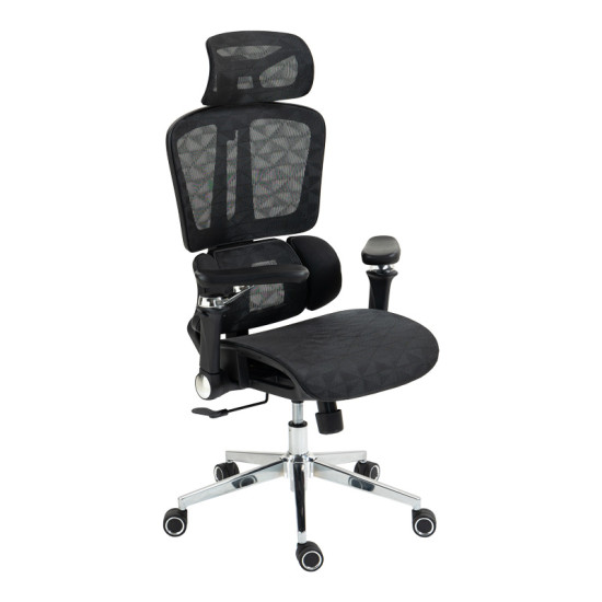 - Mesh Fabric: The breathable mesh fabric on the backrest allows air circulation and prevents body sweating. Available in black.