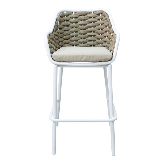 Zuki pakoworld aluminum-pp bar stool stackable with white frame and cushion 55x54x109cm
