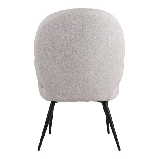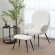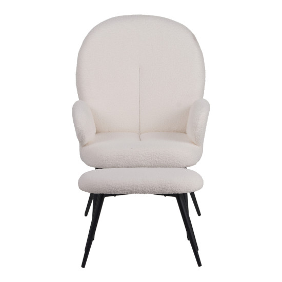 Armchair with footstool Qarar pakoworld boucle fabric in white shade with black metal legs 67.5x67.5x106cm