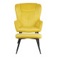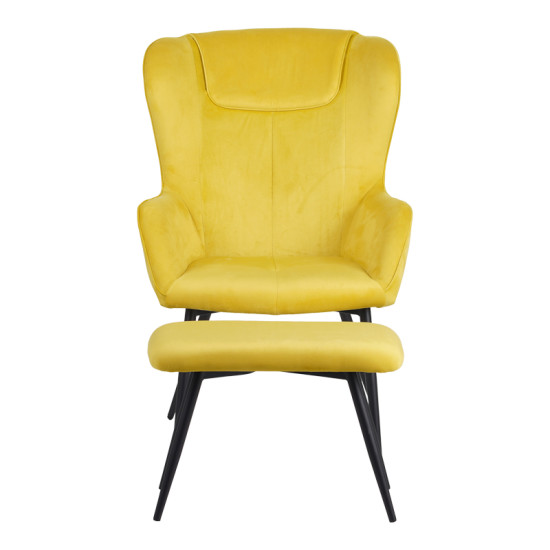 Armchair with footstool Rueda pakoworld velvet in yellow shade with black metal legs 71.5x66.5x99cm