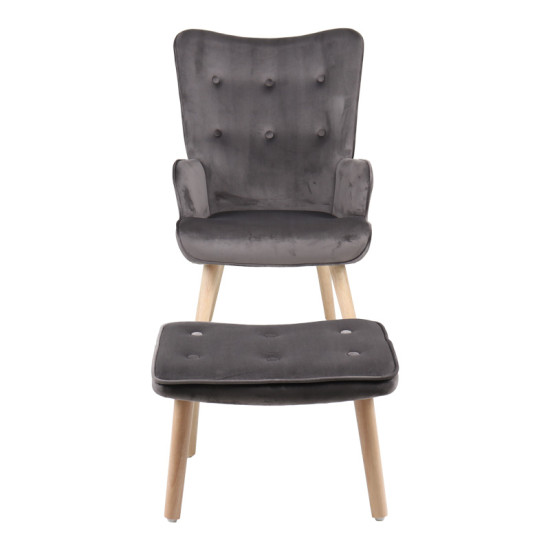 Armchair with footstool Melisia pakoworld velvet grey-natural color wooden leg 59x67x94cm
