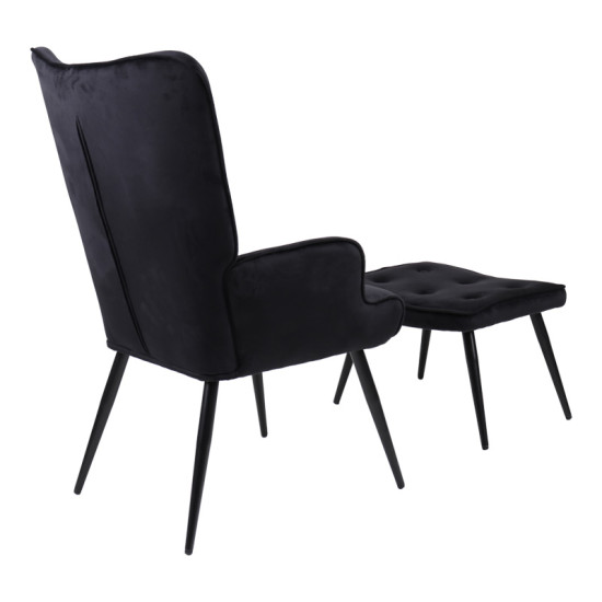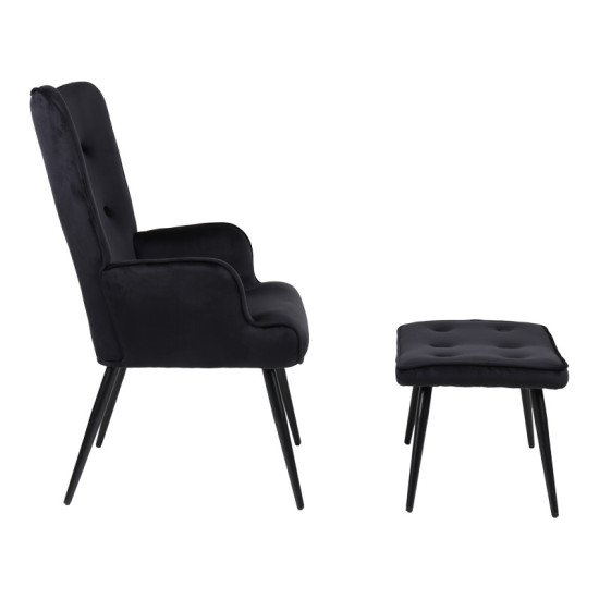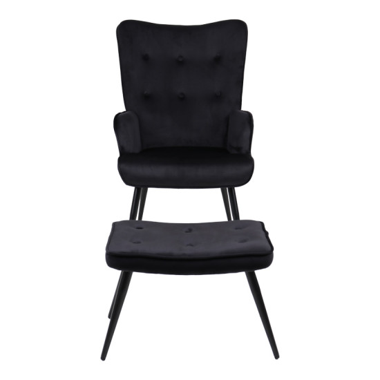 Armchair with footstool Siella pakoworld black velvet-black metal leg 59x67x94cm