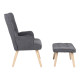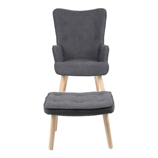 Armchair with footstool Melisia pakoworld fabric dark grey-natural color wooden leg 59x67x94cm