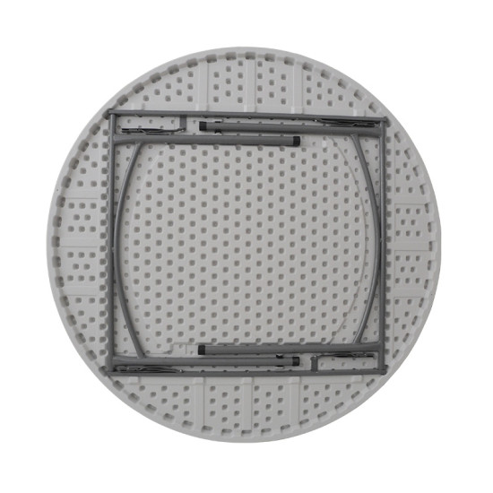 *Μονοκόμματη στρόγγυλη επιφάνεια 5 εκ. κατασκευασμένη από πολυαιθυλένιο υψηλής πυκνότητας (HDPE), ένα ανακυκλώσιμο υλικό, ειδικό για εξωτερικούς χώρους με μεγάλη ανθεκτικότητα στην καταπόνηση από τον ήλιο και τη βροχή. Προσφέρεται στο χρώμα του λευκού/γρανίτη.