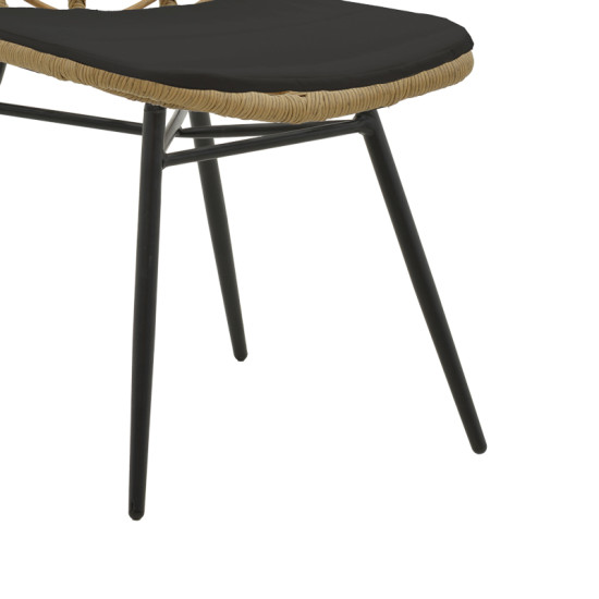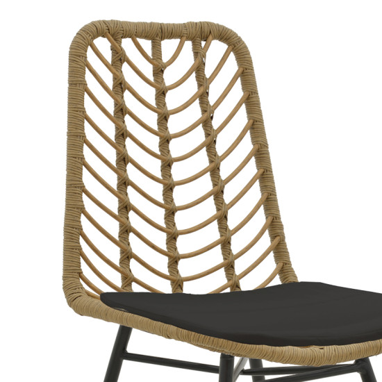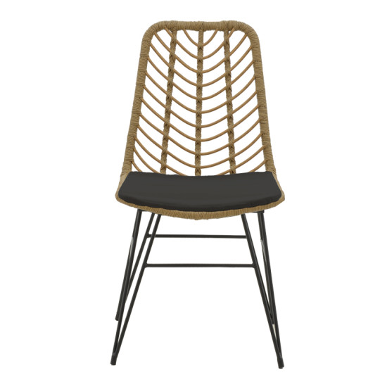 Chair Achillia pakoworld wicker rattan brown-metal black legs-black cushion 45x60x83cm