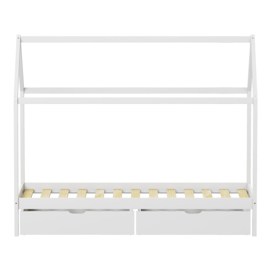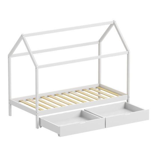 Children s bed Mellin Montessori type with 2 drawers pakoworld pine wood in white shade 90x190cm