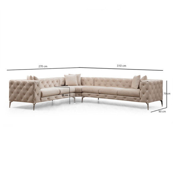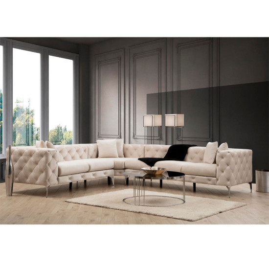 Corner sofa with right corner PWF-0579 pakoworld Chesterfield type ecru fabric 310/270x70cm
