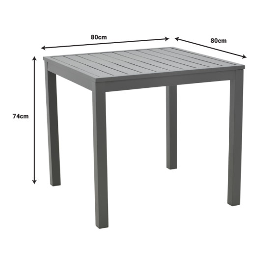 Dining table Moly - Kliton set of 5 pakoworld anthracite and black aluminium-textilene in anthracite shade 80x80x74cm