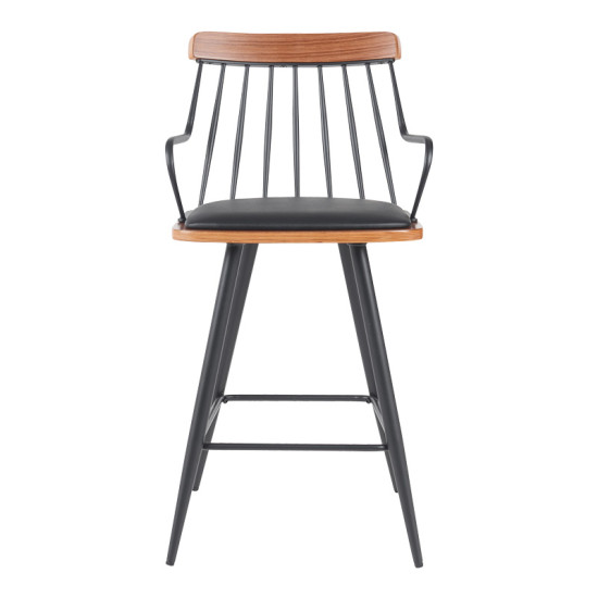 Posse bar stool pakoworld metal black-walnut wood-black pu 48x54x92.5cm